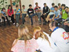 Ребята интерната №6 вместе с волонтером разучивают движения танца.